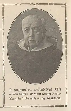 After the death of his wife, he became a member of the Dominican Order as Fr. Raymundus Maria in 1907, and lived in the monastery of Venlo in the Netherlands. He was ordained as a Catholic priest in 1908. The same year, he gave up his title of Prince and was succeeded by his son.[3] He died in Cologne.