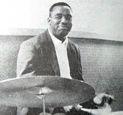 Williams continued to record and perform with Huey Smith and The Clowns. He was also part of the Ace Records studio session personnel that included Alvin "Red" Tyler on tenor and baritone sax, Lee Allen on tenor sax, Melvin Lastie on cornet, Allen Toussaint on piano, Frank Fields on bass, and Justin Adams on guitar, and Williams on drums. Other artists recorded for Ace included Sugarboy Crawford, Benny Spellman, Chuck Carbo, Jimmy Clanton, Joe Tex, Bobby Marchan, James Booker, Lee Dorsey, Big Boy Myles, and Mac Rebennac.[5][20] Between 1957 and 1959 Williams was New Orleans' premier studio drummer. Using his "double clutch" style, his hard-driving rhythms punctuated and enhanced hundreds of records on various labels with artists like Fats Domino, Paul Gayten, Professor Longhair, Mickey and Sylvia, Smiley Lewis, Hank Ballard and the Midnighters's, Art Neville, Bobby Mitchell, Frankie Ford, Allen Toussaint, Earl King, Bobby Charles, Chris Kenner, Roy Brown, Dave Bartholomew, Lee Allen, and dozens more.[21]