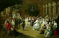 A patron of the arts and sciences, Charles became known for his affability and friendliness, and for allowing his subjects easy access to his person. But he also showed an almost impenetrable reserve, especially concerning his political agendas. His court gained a reputation for moral laxity.[1] Charles's marriage to Catherine of Braganza produced no surviving children, but the king acknowledged at least 12 illegitimate children by various mistresses. He was succeeded by his brother James.