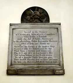 - ^ a b c d e Shaughnessy, Robert (2004). "Macklin, Charles (1699?–1797)". Oxford Dictionary of National Biography (online ed.). Oxford University Press. doi:10.1093/ref:odnb/17622. Retrieved 20 March 2015. (Subscription, Wikipedia Library access or UK public library membership required.)