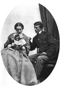 In October 1863, Lowell married businesswoman Josephine Shaw (1843—1905), a sister of his close friend and fellow Union Army casualty Colonel Robert Gould Shaw (1837—1863). Her home when she was married was on Staten Island, and she became deeply interested in the social problems of New York City. She was a member of the State Charities Aid Society, and from 1876 to 1889 was a member of the New York State Board of Charities, being the first woman appointed to that board. She founded the Charity Organization Society of New York City in 1882, and wrote Public Relief and Private Charity (1884) and Industrial Arbitration and Conciliation (1893).[2] They had one daughter, Carlotta Russell Lowell (November 30, 1864 — September 19, 1924).
