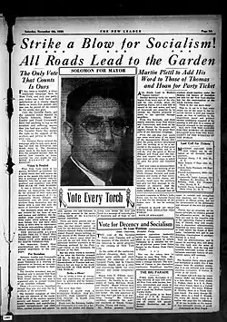 Page from The New Leader advertising Solomon's candidacy in the 1933 New York City mayoral election