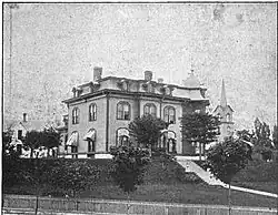George A. Mitchell, a brother to Congressman William Mitchell of Indiana, arrived in the Cadillac area in 1869, exploring the proposed route of the Grand Rapids and Indiana Railroad.[3] He was particularly interested in the area near Clam Lake (now Lake Cadillac). In 1871, he returned to the area and platted a village on the shore of the lake, and by January 1872 the village already had 300 inhabitants.[3] Mitchell was able to induce many influential businessmen and lumbermen to settle in his new community, including his nephew William W. Mitchell.[4]