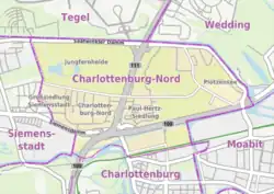 Charlottenburg-Nord (German pronunciation: [ʃaʁˈlɔtn̩bʊʁk nɔʁt], literally "Charlottenburg North") is a locality (Ortsteil) in the northern part of the Charlottenburg-Wilmersdorf borough of Berlin, Germany. It is chiefly composed of after-war housing estates, allotment gardens and commercial zones. The locality comprises the Großsiedlung Siemensstadt, part of the Berlin Modernism Housing Estates UNESCO World Heritage Site, as well as Plötzensee Prison.