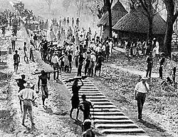 The Union Minière du Haut-Katanga (UMHK) was founded in 1906 to develop mines in Katanga. It was also to participate in building a railway to carry material and equipment to the mines and to take away the extracted minerals.[1]