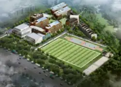 At the entrance of the school, there is a golden statue of Founder of Bongduk Education Foundation, Madame Bongduk Lee (1921–2010). The campus consists of the High School block, the Middle School Block, the "First Program" (Elementary), soccer field and residential facilities include the dormitory for students, and the Town House and Guesthouse for foreign teachers.