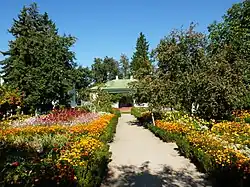 The museum consists of several buildings, including a memorial house, which recreates the atmosphere in which the artist and his family lived. In the courtyard, you can walk through the Kotsiubynsky Memorial Garden, preserved exactly as it looked during the writer's life.[3] Part of the memorial of the exposition is located in the one-story wooden house in which Mykhailo Kotsiubynsky lived from 1898 to 1913.[4] The rooms of the house recreate the atmosphere in which the writer lived with his family. Behind the house is the garden of the Kotsiubynsky family, preserved in the form in which it was during the writer's lifetime, where the plants and flowers he loved are grown. Next to the writer's memorial residence is a modern building for literary exhibitions, built in the 1980s. 20th century The literary exhibition is dedicated to different stages of the writer's career. In this building you can see constant exhibitions of contemporary artists, literary and musical events, etc.[5]