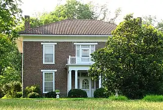 The mansion is a two-story brick structure with a one-story covered front porch. The porch has a balcony above, accessed off a second floor room. Architecturally, the house has Georgian influences. It remains a private residence, and is not open to the public.