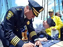 Police chiefs are usually sworn police officers, and therefore wear police uniforms and have the power of arrest, though there are exceptions. In practice, their work is administrative in all but the smallest police departments. The rare occasions when police chiefs make arrests have drawn media coverage. In 2014, Bernard Hogan-Howe chased a group of fare evaders and made an arrest. A taxi driver had approached Hogan-Howe for help, unaware that he was London's police commissioner.[3][4] In 2017, Los Angeles Police Department Chief Charlie Beck arrested a police officer on suspicion of a sexual offence.[5]