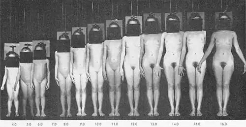 Childhood is divided into three stages of life which include early childhood, middle childhood, and late childhood (preadolescence).[2] Early childhood typically ranges from infancy to the age of 6 years old. During this period, development is significant, as many of life's milestones happen during this time period such as first words, learning to crawl, and learning to walk. Middle childhood/preadolescence or ages 6–12 universally mark a distinctive period between major developmental transition points.[2] Adolescence is the stage of life that typically starts around the major onset of puberty, with markers such as menarche and spermarche, typically occurring at 12–14 years of age.[3] It has been defined as ages 10 to 24 years old by the World Happiness Report WHR.[1] In the course of development, the individual human progresses from dependency to increasing autonomy. It is a continuous process with a predictable sequence, yet has a unique course for every child. It does not always progress at the same rate and each stage is affected by the preceding developmental experiences. As genetic factors and events during prenatal life may strongly influence developmental changes, genetics and prenatal development usually form a part of the study of child development. Related terms include developmental psychology, referring to development from birth to death, and pediatrics, the branch of medicine relating to the care of children.