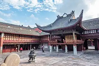 Paifang, also known as a Pailou, is a traditional style of Chinese architectural arch or gateway structure that is related to the Indian Torana from which it is derived.[77] The word paifang (Chinese: 牌坊; pinyin: páifāng) was originally a collective term for the top two levels of administrative division and subdivisions of ancient Chinese cities. The largest division within a city in ancient China was a fang (坊; fāng), equivalent to a current day ward. Each fang was enclosed by walls or fences, and the gates of these enclosures were shut and guarded every night. Each fang was further divided into several pai (牌; pái; 'placard'), which is equivalent to a current day (unincorporated) community. Each pai, in turn, contained an area including several hutongs (alleyways). This system of urban administrative division and subdivision reached an elaborate level during the Tang dynasty, and continued in the following dynasties. For example, during the Ming dynasty, Beijing was divided into a total of 36 fangs. Originally, the word paifang referred to the gate of a fang and the marker for an entrance of a building complex or a town; but by the Song dynasty, a paifang had evolved into a purely decorative monument.