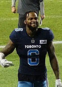 On June 2, 2021, it was announced that Edwards had signed with the Toronto Argonauts.[11] In his fourth year in the league, Edwards played in all 14 regular season games for the Argos, contributing with 37 defensive tackles, one special teams tackle, three sacks, three interceptions, and two touchdowns. He was named a CFL All-Star for the first time in his career.[13] Edwards was suspended by the Canadian Football League for six games in the 2022 season following a fan altercation after the Argos were eliminated from the playoffs by the Hamilton Tiger-Cats.[14] In early July 2022 the CFL and CFLPA announced that Edwards' suspension had been reduced from six games to three games.[15]