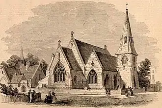 Christ Church, Stratford was a Church of England church on the corner of Union Street and High Street in Stratford, London. It was built in 1852 to serve the Stratford Marsh area and consecrated on 15 May that year. On 10 November 1852 it was assigned a separate parish, taken from that of All Saints Church, West Ham. The costs of construction and purchasing the site were partly met by Thomas Curtis.[1] In 1882 it opened a mission on Ward Road, for which the church of St Aidan was built – it was begun in 1895, suffered bomb damage in the London Blitz and was closed in 1944. Christ Church celebrated its centenary in 1952 but was merged into the parish of St John's Church, Stratford in 1961[2] – the church site was bought by the local council and the building finally demolished in 1975, though the site remained undeveloped until works for the 2012 Olympics.