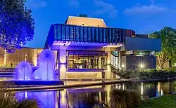 The Christchurch Town Hall, since 2007 formally known as the Christchurch Town Hall of the Performing Arts, opened in 1972, is Christchurch, New Zealand's premier performing arts centre. It is located in the central city on the banks of the Avon River overlooking Victoria Square, opposite the former location of the demolished Christchurch Convention Centre. Due to significant damage sustained during the February 2011 Christchurch earthquake, it was closed until 2019.[1] Council staff initially recommended demolition of all but the main auditorium, but at a meeting in November 2012, councillors voted to rebuild the entire hall.[2] In 2020, the town hall was registered as a Category I heritage building.