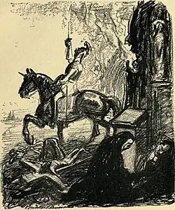 In 1095, at the Council of Clermont, Pope Urban II declared that some wars could be deemed as not only a bellum iustum ("just war"), but could, in certain cases, rise to the level of a bellum sacrum (holy war).[39] Jill Claster, dean of New York University College of Arts and Science,[40] characterizes this as a "remarkable transformation in the ideology of war", shifting the justification of war from being not only "just" but "spiritually beneficial".[41] Thomas Murphy examined the Christian concept of Holy War, asking "how a culture formally dedicated to fulfilling the injunction to 'love thy neighbor as thyself' could move to a point where it sanctioned the use of violence against the alien both outside and inside society". The religious sanctioning of the concept of "holy war" was a turning point in Christian attitudes towards violence; "Pope Gregory VII made the Holy War possible by drastically altering the attitude of the church towards war... Hitherto a knight could obtain remission of sins only by giving up arms, but Urban invited him to gain forgiveness 'in and through the exercise of his martial skills'." A holy war was defined by the Roman Catholic Church as "war that is not only just, but justifying; that is, a war that confers positive spiritual merit on those who fight in it".[42][43]