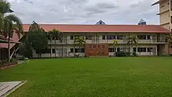 In 1950, Chung Hua came first place in the Belait District's Interschool Football Competition,[10] and later again in 1952, the school alongside Brunei Town Malay School came out as the finalist.[11] The school had a major upgrade in 1955,[12] and later in 1956, the school was officially opened by the Sultan Omar Ali Saifuddien III.[13] The name Chung Hua Middle School only came in 1957,[14][15] when the school's lower secondary classes were implemented.[16] The school's 2nd block was completed in 1967.[17] Moreover, the following multi-purpose hall was built in 1974 but it only lasted four years,[18] in which a fire destroyed the hall alongside the teachers' hostel.[19] The Lau Hong Siong building was completed in 1979,[20] followed by the reconstruction of the multi-purpose hall in 1981.[21]
