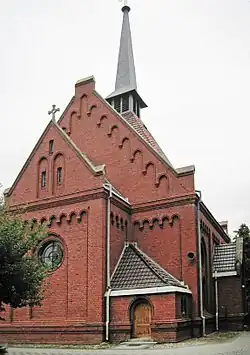 Church of Blessed Michał Kozal is a Gothic Revival church built between 1894 and 1895, designed by Bruno (likely Bruno Schulz, a German architect) as a chapel for the Dziekanka Psychiatric Hospital.[1] It currently serves as the church of the Catholic Parish of Blessed Michał Kozal in Gniezno, while also being used by the Evangelical parish from Poznań (simultaneous church). The temple features two chancels.[2][3] It has been temporarily closed since 7 February 2012.[4]