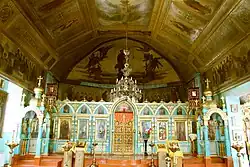 In 2020–2021, under the directive of Azerbaijani President Ilham Aliyev, the Archangel Michael Church complex underwent a comprehensive reconstruction and restoration funded by the state and private benefactors. The project involved restoring the church's facade, installing a gilded dome, constructing a bell tower, and beautifying the interior. Historical frescoes on the church arches were renewed, and the altar, dome, walls, and narthex were fully painted. These works were carried out by professional iconographers from the Moscow State Academy of Arts and Design.[17] The reconstruction was executed by the ArchiSO construction company.[6] The church resumed its operations in April 2022.[18]