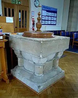 By 1924 the church was becoming too small for its growing congregation and work on an extension began in early 1931, with two further bays being added to the nave and adding two single bays on both sides, that on the south to house the organ and that on the north to act as a vestry, with a temporary wall being added in the east. This extension was dedicated on 18 December 1931.[6] The baptismal font was found in pieces in a builder's yard in 1934 having been removed from St Albans Abbey, where it had been installed in 1853. The font was obtained for the price of transporting it to St Paul's where it was installed and dedicated to the memory of the late Mrs Evelyn Swatman.[7]