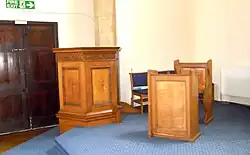 In 1989 the church was reordered, turning the seating around from facing the east to facing the west. At about the same time a new smaller altar was installed and new communion rails fitted. The pulpit was boarded in and the baptismal font moved to the northeast corner of the church.