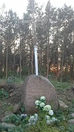 1. ^ The exact text of the plaque: This chapel was erected through the efforts of Szymon Szum on 3 May 1854 (Sosna & Troc-Sosna (2006, p. 307)).