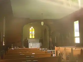 The Church of the Good Shepherd is a historic Episcopal church located on the Onondaga Indian Reservation near Syracuse, Onondaga County, New York. It is an older building that was remodeled in 1869-1870 for Episcopal worship. It is a one-story, rectangular frame church with Gothic Revival style design elements. The three bay by three bay building has a projecting entrance topped by a one-stage bell tower. The building features pointed arched openings.[2]: 5
