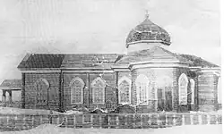 In 1947, the church building, cut from logs, was dismantled and moved to a vacant lot along the current street named after Valikhanov[9] thanks to the intervention of the archbishop Alma-Ata Nikolai (Mogilevsky), who sent a telegram to Moscow to Council for the Russian Orthodox church demanding the return of the temple to the believers.[10]