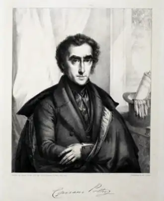 In Vienna, Potter met Beethoven, who approved of him but declined to teach him composition, advising him to study with Aloys Förster.[2] Beethoven nevertheless read some of Potter's compositions and gave him his comments.[3] Potter later published an article, "Recollections of Beethoven" in Musical World, making clear his great admiration and affection.[4] During his time in Italy, Potter developed an admiration of Italian opera, and particularly the works of Rossini.[5] Twelve years later he wrote Variazioni di bravura on a theme by Rossini, using a melody from Matilde di Shabran.