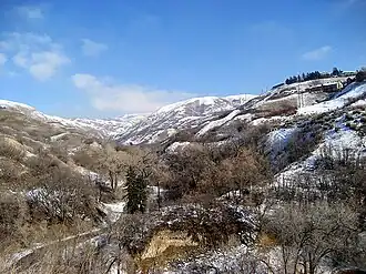 City Creek is a small but historically important mountain stream that flows from City Creek Canyon and across part of Salt Lake City, Utah, and into the Jordan River which empties into the Great Salt Lake. City Creek's head is about 8 miles (13 km) up City Creek Canyon northeast of Downtown Salt Lake City. The entire stream measures only about 14.5 miles (23.3 km) long. Melting snow from adjacent mountains provides most of City Creek's currents, but the stream flows year-round because of natural springs at the head of the creek.
