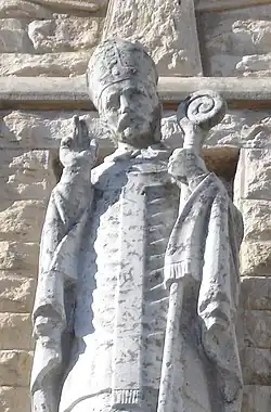 The statue of Saint Clair on the pediment of the church of Caluire.