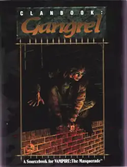 In the World of Darkness setting, gangerels are vampires who live solitary lives in the wild, only occasionally gathering together for evenings of storytelling.[1] Clanbook: Gangrel is a supplement that provides information about how to create and play a gangrel character. Ten sample characters take up about half of the book.[1] The book also contains stories about the clan, their friendship with werewolves — unusual for vampires in the World of Darkness setting — and the clan's connection with gypsies.[2]