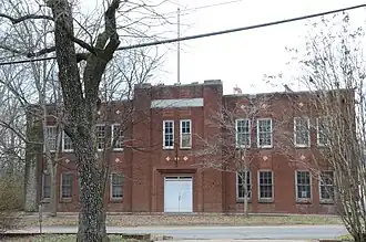 The Clarksville National Guard Armory is a historic former National Guard Armory at 309 College Street in Clarksville, Arkansas. It is a two-story building, finished in brick with restrained Art Deco styling. Its main facade is 10 bays wide, with a projecting section at the center housing two bays on the upper floor, and a double door entrance on the first. The entrance is set in a stepped recess, and it and the windows above are flanked by brick pilasters at the corner of the projection. The building was built in 1930, and served the Arkansas National Guard as a training and storage facility until 1980, after which ownership was turned over to the city.[2]