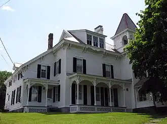 The home was built in 1857 in the Italianate style, and was remodeled and enlarged between 1884 and 1891 in the Queen Anne style. It is an irregularly massed, 2+1⁄2-story, slate-roofed clapboard-sheathed house with a 3-story square tower with a pyramidal hipped roof. It has a 1+1⁄2-story shed-roofed wing. A sunflower motif appears on the exterior and interior. Also on the property is a carriage barn built in about 1890.[2]