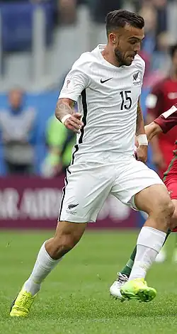 Lewis playing for New Zealand against Portugal at the 2017 FIFA Confederations Cup