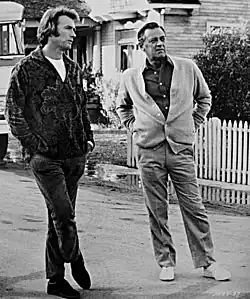 Eastwood's career reached a turning point in 1971.[103] Before Irving Leonard died, he and Eastwood had discussed the idea of Malpaso producing Play Misty for Me, a film that was to give Eastwood the artistic control he desired, and his debut as a director.[104] The script was about a jazz disc jockey named Dave (Eastwood), who has a casual affair with Evelyn (Jessica Walter), a listener who had been calling the radio station repeatedly at night, asking him to play her favorite song – Erroll Garner's "Misty". When Dave ends their relationship, the unhinged Evelyn becomes a murderous stalker.[105] Filming commenced in Monterey in September 1970 and included footage of that year's Monterey Jazz Festival.[106] The film was highly acclaimed with critics, such as Jay Cocks in Time, Andrew Sarris in the Village Voice, and Archer Winsten in the New York Post all praising the film, as well as Eastwood's directorial skills and performance.[107] Walter was nominated for a Golden Globe Best Actress Award (Drama), for her performance in the film.[108]