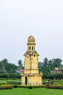 The Clock Tower of Murshidabad (locally known just as Clock Tower or Ghari Ghar, also known as Big Ben of Murshidabad) is a clock tower in the Nizamat Fort Campus in West Bengal, India. The clock tower stands in the garden space between the Nizamat Imambara and the Hazarduari Palace;[1] to its east, hardly a few feet away, is the old Madina Mosque and the Bacchawali Tope.