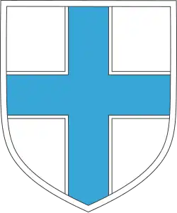 The flag of the city of Marseille, a white flag with a blue cross, has the peculiarity of being older than the coat of arms.[3] The cross was adopted as a symbol of the Crusades, since at that time, (11th - 13th centuries) in the ports of embarkation to go to the Holy Land, flags loaded with crosses were hoisted as a characteristic sign of the safe ports.[1][3]