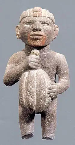 More than 3,000 years ago, it was consumed by pre-Hispanic cultures along the Yucatán, including the Maya,[7] and as far back as Olmeca civilization[8] in spiritual ceremonies.[9][10] It also grows in the foothills of the Andes in the Amazon region and the Orinoco basins of South America, such as in Colombia and Venezuela.[11][12] Wild cacao still grows there.[13][14][15] Its range may have been larger in the past; evidence of its wild range may be obscured by cultivation of the tree in these areas since long before the Spanish arrived.[16]