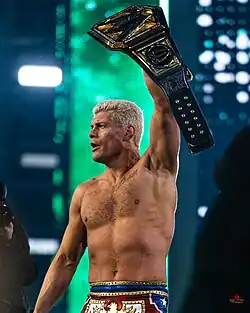 The son of Dusty Rhodes and half-brother of Dustin Rhodes, he won two Georgia state high-school championships as an amateur wrestler in 2003 and 2004. He signed with WWE in 2006 and featured for its developmental territory, Ohio Valley Wrestling (OVW), where he won the OVW Television Championship, OVW Southern Tag Team Championship (with Shawn Spears), and OVW Heavyweight Championship once each, becoming a Triple Crown Champion. Between 2007 and 2016, he won eight world tag team championships with five different partners and the Intercontinental Championship twice.[9] During this time, he adopted various gimmicks, including performing as Stardust, a melodramatic spin-off of his brother's gimmick, Goldust. He departed WWE in 2016 and returned in 2022, and has since won the Royal Rumble match in 2023 and 2024, the 2025 King of the Ring tournament, the WWE Championship twice, becoming WWE's 34th Triple Crown Champion, and headlined WWE's flagship event, WrestleMania, four times (39 – Night 2, 40 – Night 1 & 2, and 41 – Night 2).