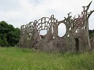 Collector is also famous for the controversial sculpture Dreamer by Tony Phantastes, built between 1993 and 1997 to commemorate, among other things, his father and son's life. His artistic vision was to create a wonderland to document the history of Australian land-use practices. A Gothic structure of cement and chicken wire, the artist and the Gunning Shire Council are in constant battle regarding the structure since 1999.[12] The plot in which the sculpture stands was for sale and the sculpture itself under demolition orders[13] but still stands as of May 2021.[14] Unfortunately, the piece has started to rust and has become structurally unstable.[15]