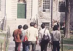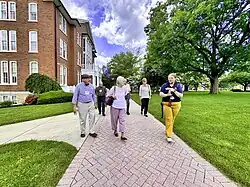 In most cases a campus visit involves an information session directed by an admissions officer and a walking tour of campus conducted by a student ambassador.[1] A campus visit can be taken by individual students and their families. Many colleges offer “open houses” usually consisting of a day or series of days set aside for students and their families to visit a particular school. Often there will be special programs or presentations during these times which would not be available during a regular visit.[2][3] Most colleges and universities also offer private tours and information sessions for large groups from a single school or educational program.[4][5]