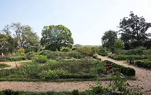 A Colonial Revival garden is a garden design intended to evoke the garden design typical of the Colonial period of Australia or the United States. The Colonial Revival garden is typified by simple rectilinear beds, straight (rather than winding) pathways through the garden, and perennial plants from the fruit, ornamental flower, and vegetable groups.[1] The garden is usually enclosed, often by low walls, fences, or hedges.[1] The Colonial Revival gardening movement was an important development in the gardening movement in the United States.[2]