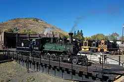 Steam locomotive D&RGW #346 (originally numbered D&RG #406)on the turntable, built in 1881, and restored to its 20th-century appearance (Compare with photo below).