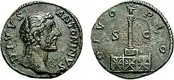 The Column of Antoninus Pius (Italian: Colonna di Antonino Pio) is a Roman honorific column in Rome, Italy, devoted in AD 161 to the Roman emperor Antoninus Pius, in the Campus Martius, on the edge of the hill now known as Monte Citorio, and set up by his successors, the co-emperors Marcus Aurelius and Lucius Verus. The column itself is now destroyed, but its base is preserved.