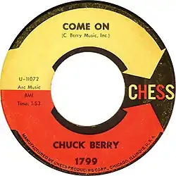 "Come On" is a song written and first released by Chuck Berry in 1961. It has been recorded in many versions by many bands since its release, most notably the Rolling Stones. "Come On" failed to chart in the US top 100, but the B-side, "Go Go Go", reached number 38 on the UK Singles Chart.