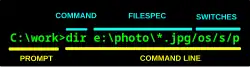 A command-line option or simply option (also known as a flag or switch) modifies the operation of a command; the effect is determined by the command's program. Options follow the command name on the command line, separated by spaces. A space before the first option is not always required, such as Dir/? and DIR /? in DOS, which have the same effect[22] of listing the DIR command's available options, whereas dir --help (in many versions of Unix) does require the option to be preceded by at least one space (and is case-sensitive).