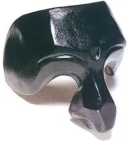 Harlequin originally wore a tight fitting long jacket with matching trousers that both had numerous odd shaped patches, usually green, yellow, red, and brown.[44][45] Usually, there was a bat and a wallet that would hang from his belt.[45] His hat, which was a soft cap, was modeled after Charles IX or after Henri II, and almost always had a tail of a rabbit, hare or a fox with the occasional tuft of feathers.[45][44] During the 17th century, the patches turned into blue, red, and green triangles arranged in a symmetrical pattern.[45] The 18th century is when the iconic Harlequin look with the diamond shaped lozenges took shape. The jacket became shorter and his hat changed from a soft cap to a double pointed hat.[45]