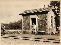 Station building with a military horse-drawn ambulance of the 6e Corps and a guard house, 1916. Preserved unter the ownership and management of Le Conseil Départemental de la Meuse. |