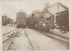 During the World War I, the locomotive fleet of the Compagnie Meusienne de Chemins de Fer (CM) was strengthened by requisitioning locomotives from metre gauge lines in other parts of France, so that up to 128 locomotives were used on the line. One of these was No. 55 (Corpet Louvet 1253/1909) from the Chemins de Fer Économiques des Charentes (EC). By the end of 1915, operational improvements made it possible to handle a very large amount of freight, which had increased from 800 to 1500 tons per day in addition to carrying 80 passengers per day. In the first five months of 1916, traffic increased to 137,367 soldiers, 84,888 wounded, 201,257 tons of supplies and 69,847 tons of ammunition and weapons transport.[5]
