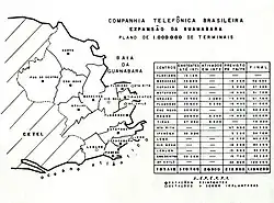 The manual telephone exchanges in Jacarepaguá, Marechal Hermes, Bangu, Campo Grande, Santa Cruz, Ilha do Governador and Paquetá became automated in 1965 when they began to be operated by Companhia Estadual de Telefones da Guanabara (CETEL).[38][39][40]